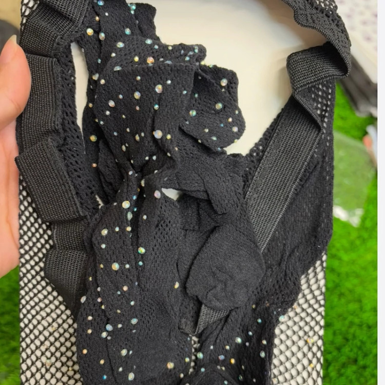 جوراب شلواری زنبوری ریز نگین دار فاق بسته کشسانی عالی تک رنگ مشکی مچ پا به پایین بدون نگین و کفی