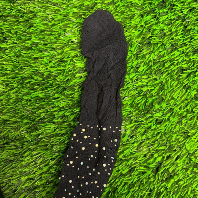 جوراب شلواری زنبوری ریز نگین دار فاق بسته کشسانی عالی تک رنگ مشکی مچ پا به پایین بدون نگین و کفی