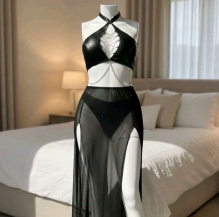لباس خواب بلند چاکدار و زنجیر دار ( کد : ۹۰۱۴ )