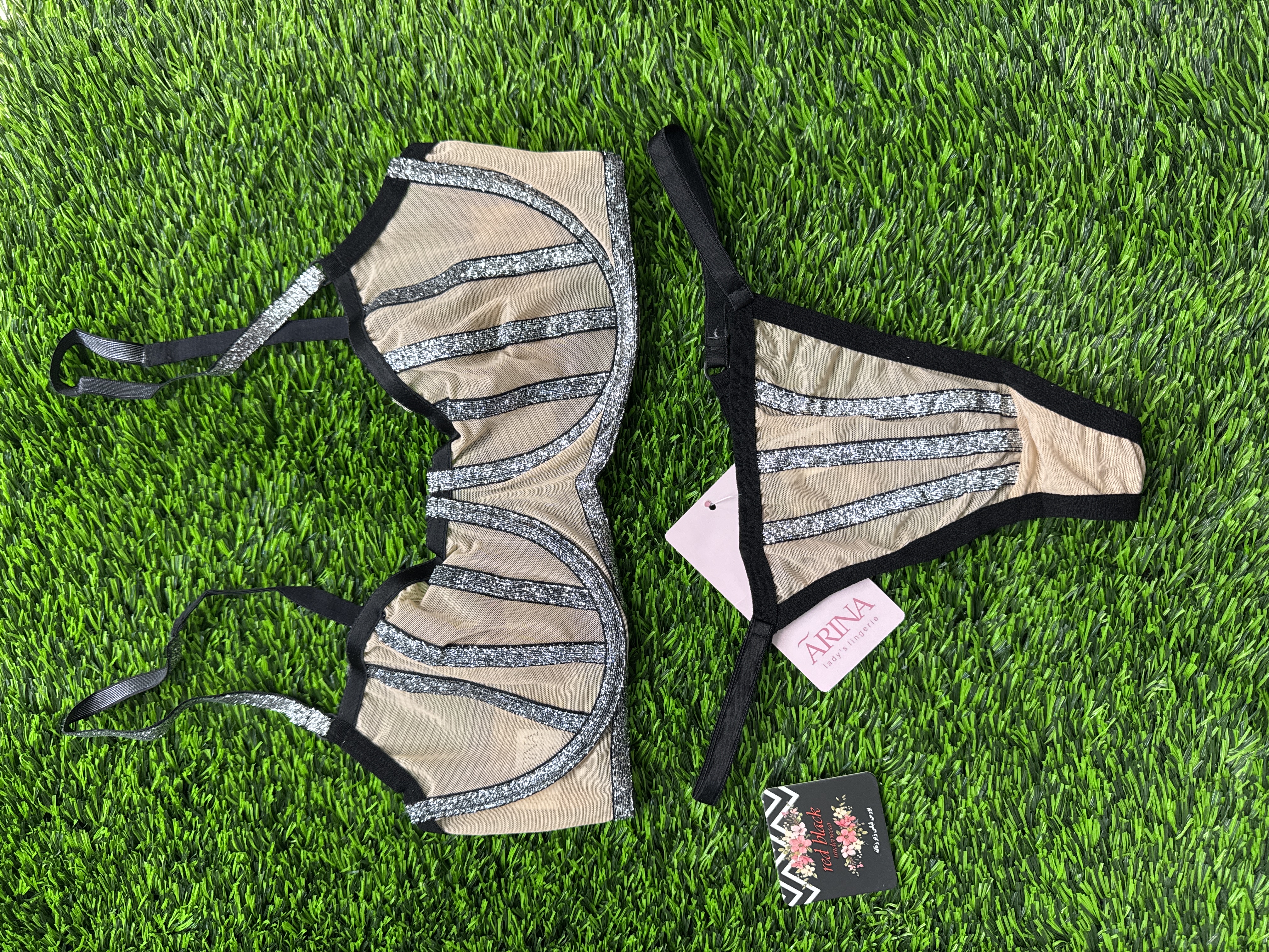 تمام تور، فنردار، خط نقره ای لمه کار شده ، شورت بگلس ،
