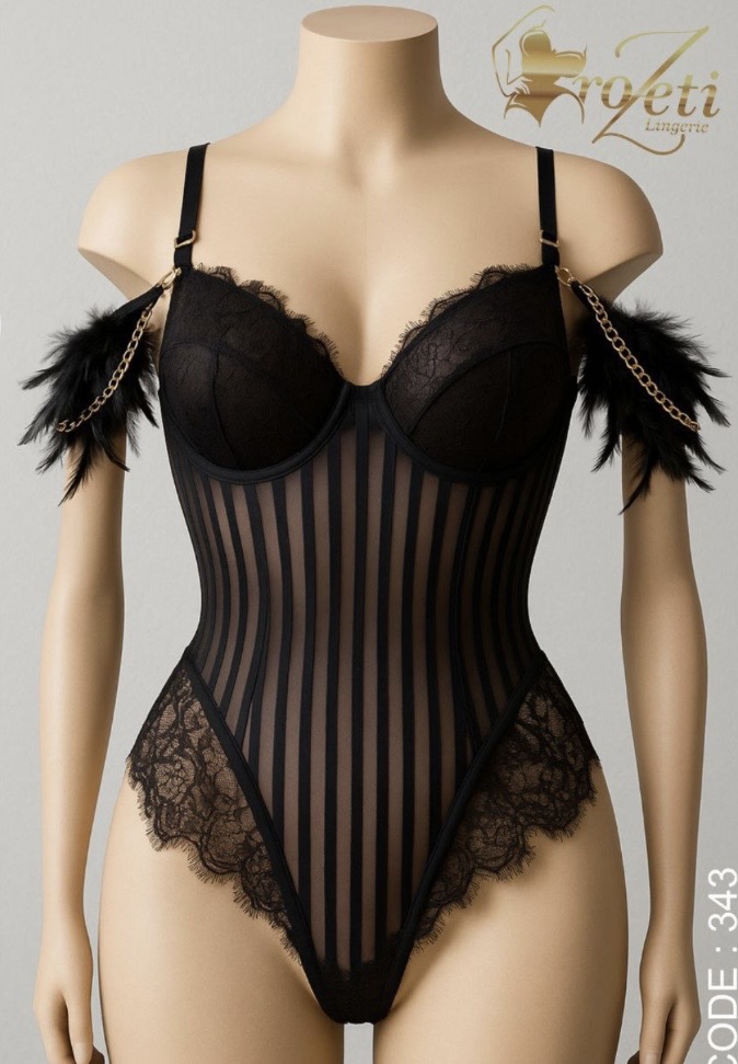 بادی و لباس خواب فانتزی پر دار و زنجیر دار